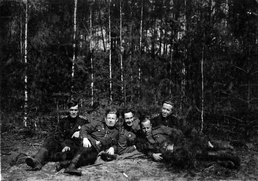 Офицеры разведдивизиона. Ст. лейтенант Солженицын – первый справа. 1-й Белорусский фронт, 1943
